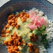 4. Serve: Serve the butter cauliflower on rice and top with the mint sauce. Add pickled onions if you want. ENJOY!