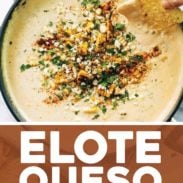 Here, take a chip, because it’s elote queso o’clock which happens to be my FAVORITE o’clock of the summer.