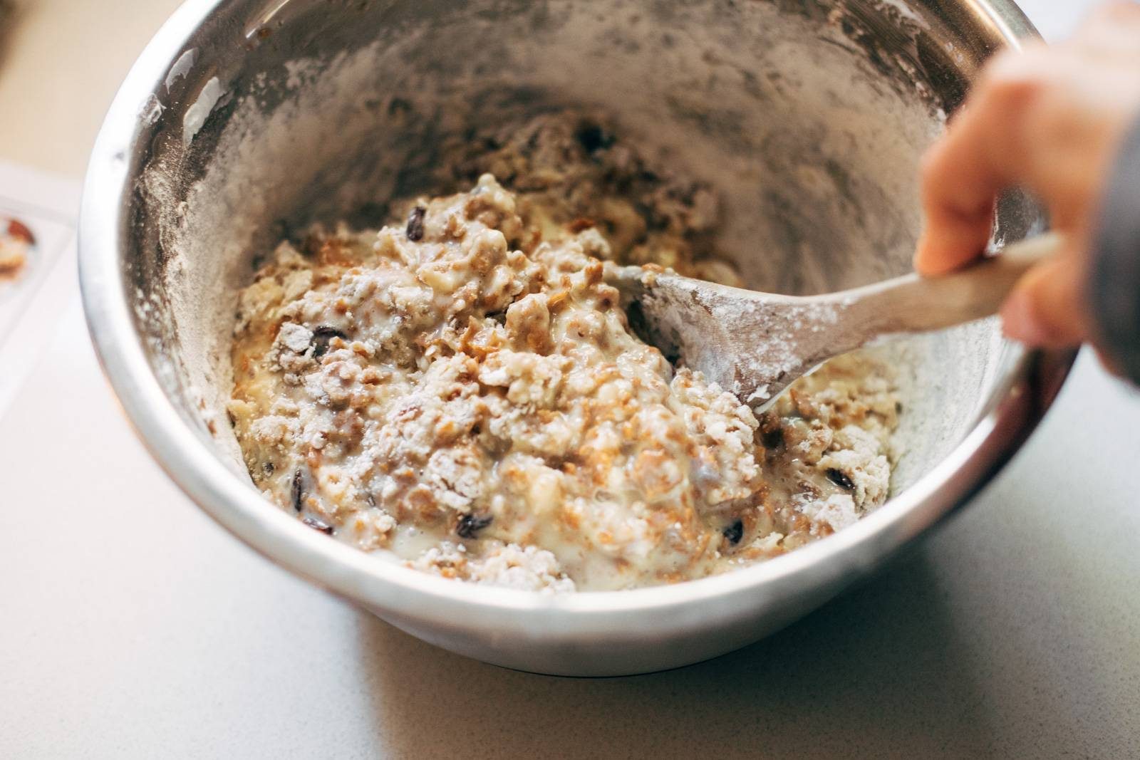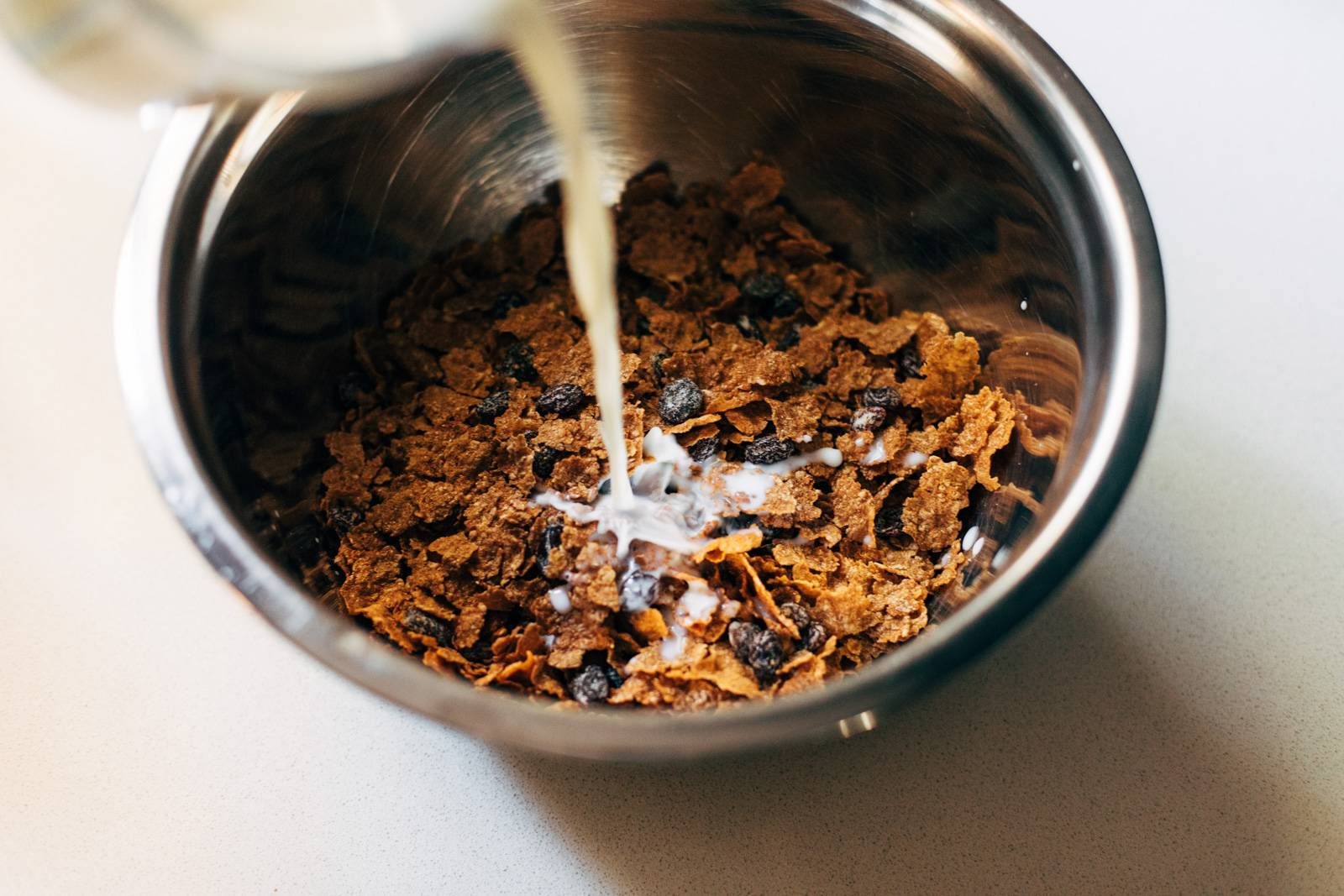 Add the Raisin Bran, milk, and oil to a bowl and let it soak for 15-20 minutes.