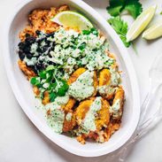 - Part 3: I just couldn’t leave the Brazilian Burrito theme alone, so once the house stopped smelling like an overly chocolatey mole sauce fail zone, I decided to try again. This time with a **tried and true** sauce that you may remember from these shrimp tacos. Also: arranged in an actual container from Chipotle because it’s not ever going to be a REAL burrito bowl without one.